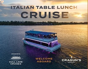 Enjoy a relaxing afternoon on Gull Lake with Cragun’s Italian Table Lunch Cruise—where classic Italian flavors meet beautiful lakeside views.